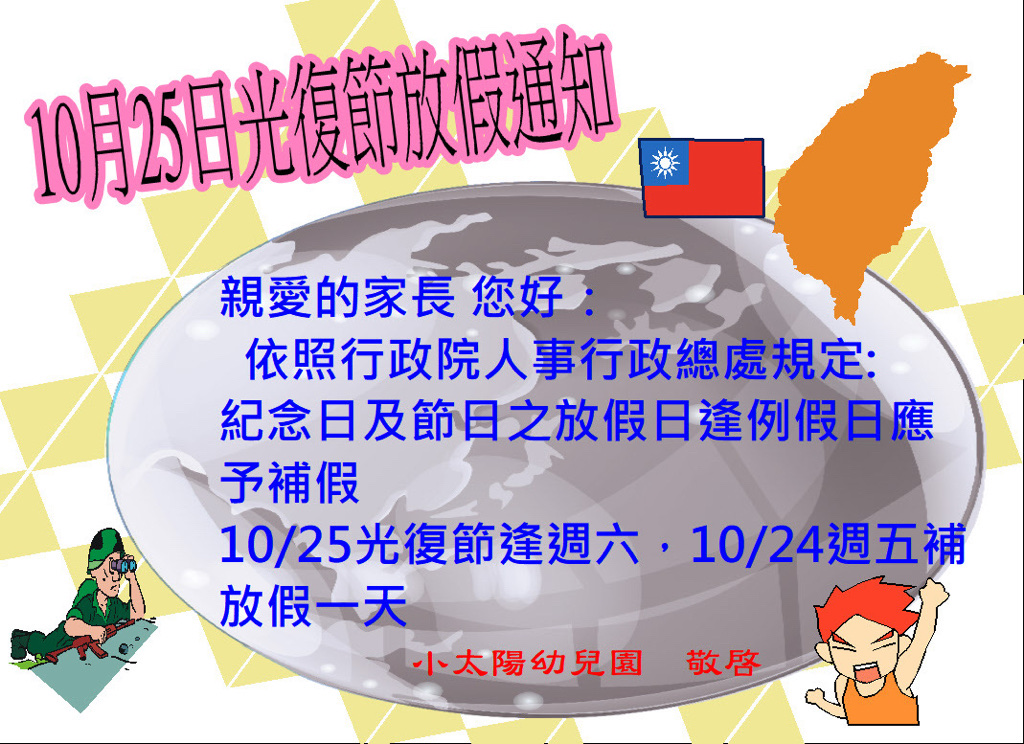 相簿名稱: 光復節放假通知