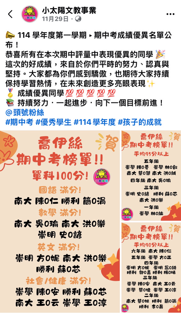 賀賀賀國小部期中考成績優異 獎學金來啦