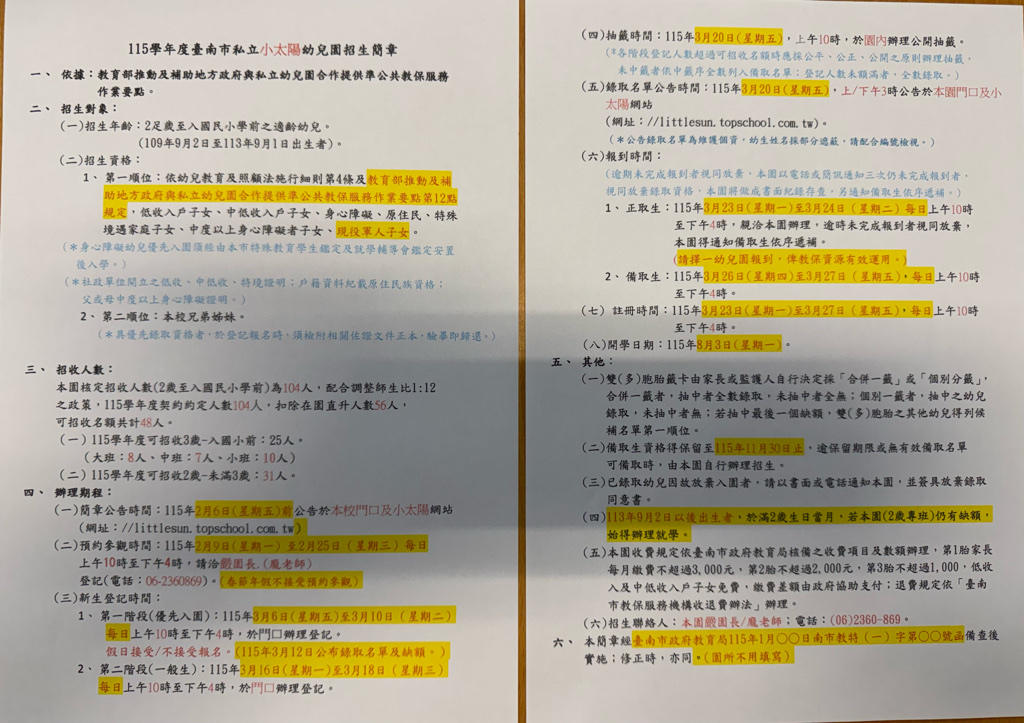 小太陽招生簡章