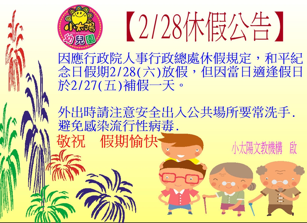 相簿名稱: 228放假通知